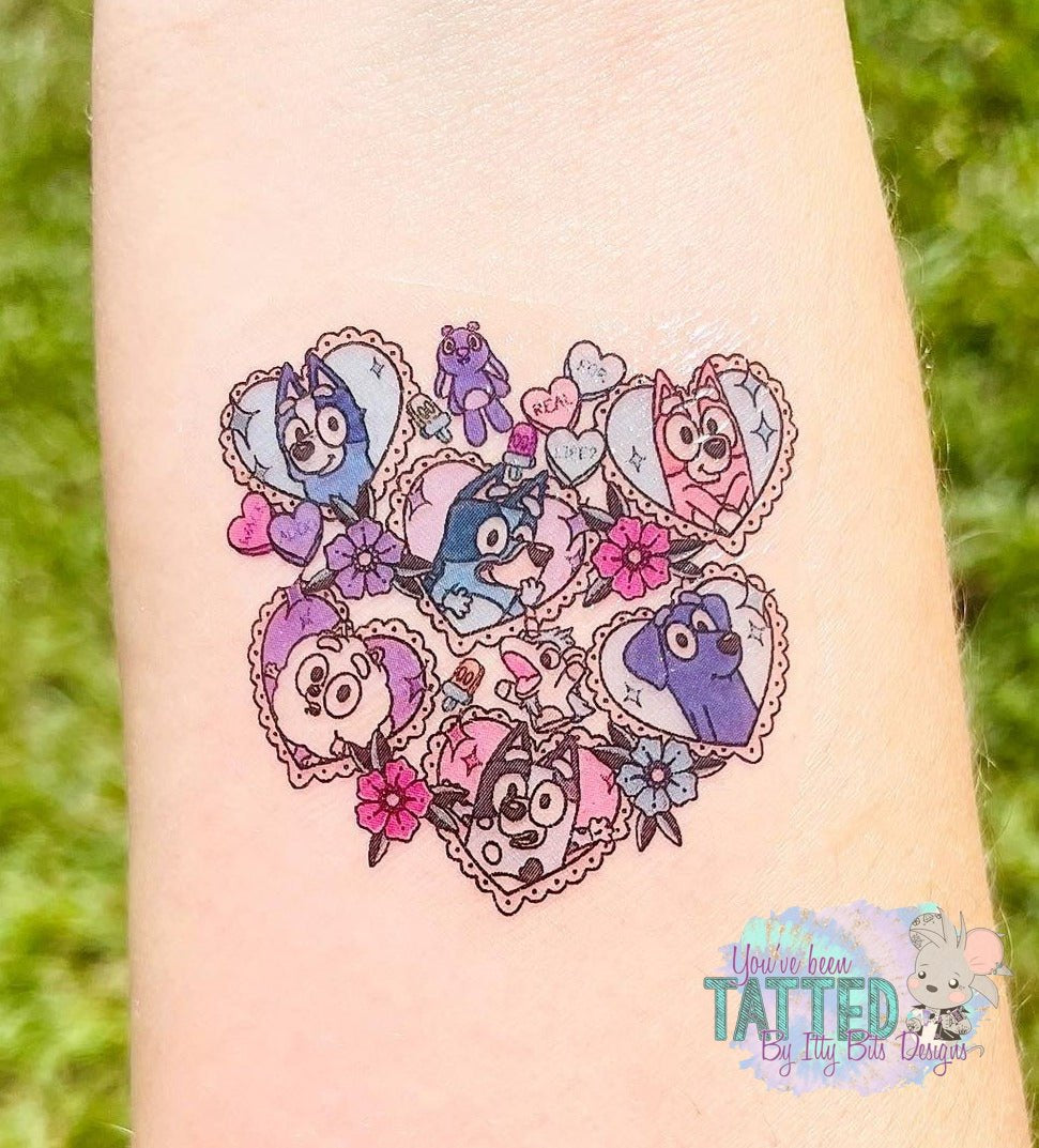 Les tatouages ont une taille de 1,5 à 2 pouces selon l'image.